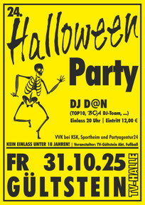 Am Freitag, 31. Oktober 2025, ist es wieder soweit und die Halloweenparty der Fußballabteilung des TV Gültstein findet in der TV-Halle in Gültstein statt. Hierbei sorgt DJ D@n für eine mega Party!